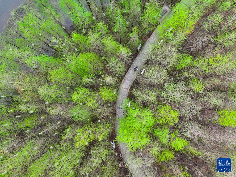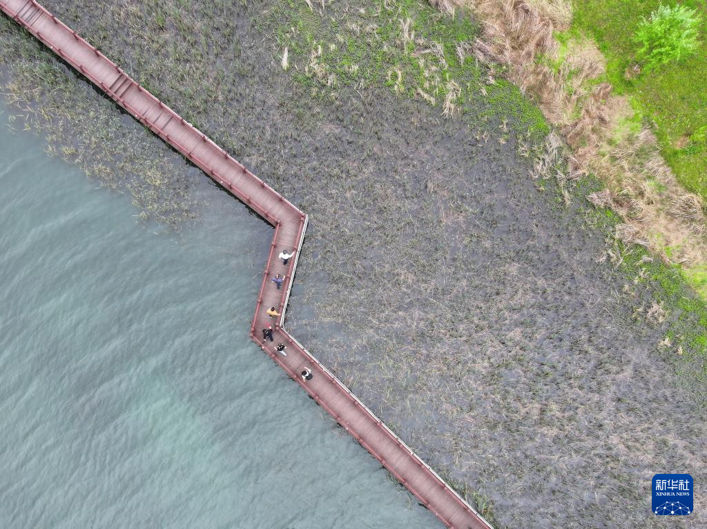 4月2日,游人在湖南松雅湖国家湿地公园游玩(无人机照片)。