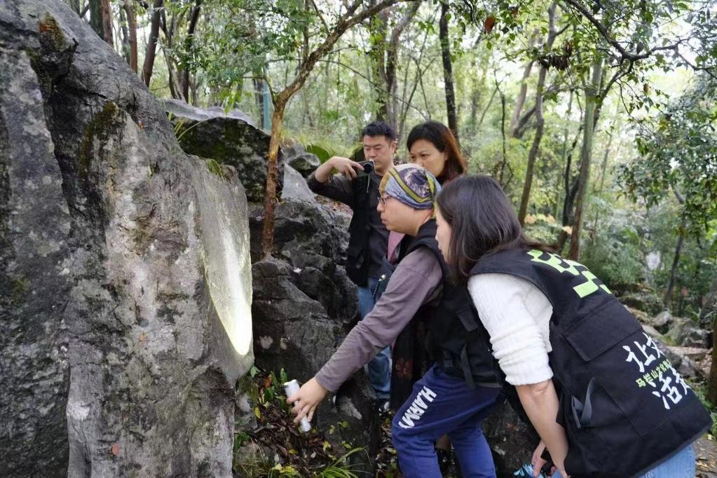 “知了青年”团队成员在浯溪碑林勘察及采集资料。(马栏山文化数字化创新中心供图)