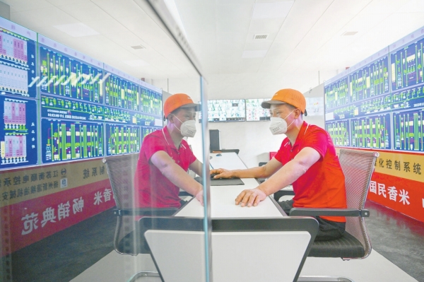 湖南生平米业股份有限公司的工作人员通过远程智能化自动生产大米。湖南日报全媒体记者 郭立亮 摄