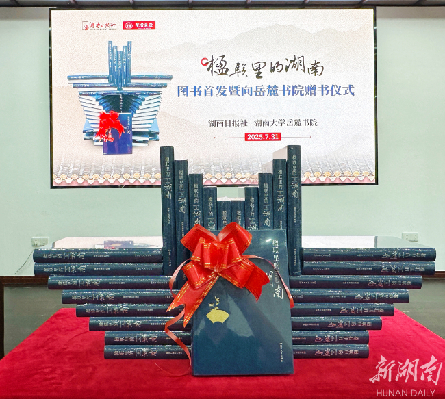 作为“湖湘第一楹联重镇”,岳麓书院有着丰富的楹联资源,《楹联里的湖南》图书就收录了包括“惟楚有材;于斯为盛”在内的6副书院楹联的报道。湖南日报社向岳麓书院赠送了《楹联里的湖南》图书,将由书院予以收藏。