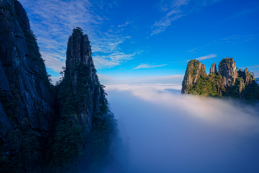 莽山五指峰景区地处湖南省宜章县溶家洞,拥有奇松、怪石、云海、雾凇、杜鹃、温泉等自然景观,建有云间栈道、悬空索道、垂直电梯、提升机等无障碍设施。2020年10月,中国旅游景区协会和中国肢残人协会分别授予其“全国首家无障碍山岳型旅游景区”“全国首家无障碍山岳型景区”。新华网发 邓加亮摄