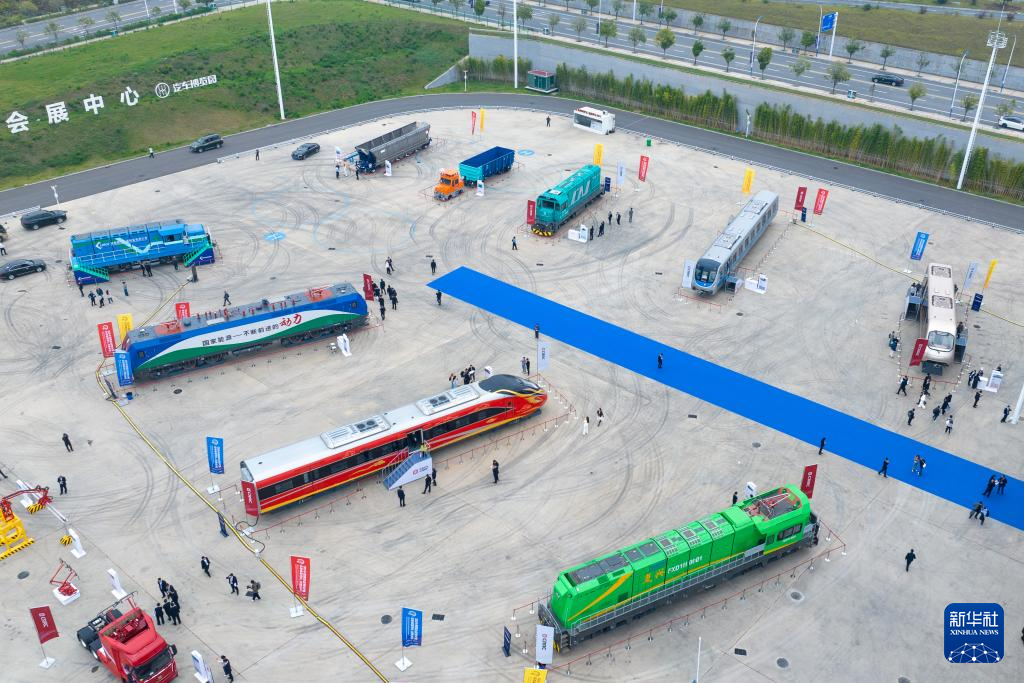 这是11月7日拍摄的2025中国国际轨道交通和装备制造产业博览会户外展区(无人机照片)。新华社记者 陈思汗 摄pagebreak