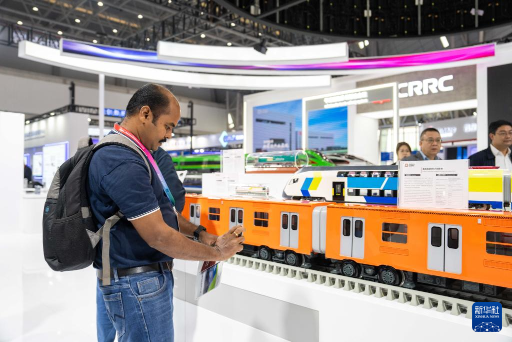 11月7日,观众在株洲国际会展中心了解国产列车产品。新华社记者 陈思汗 摄pagebreak