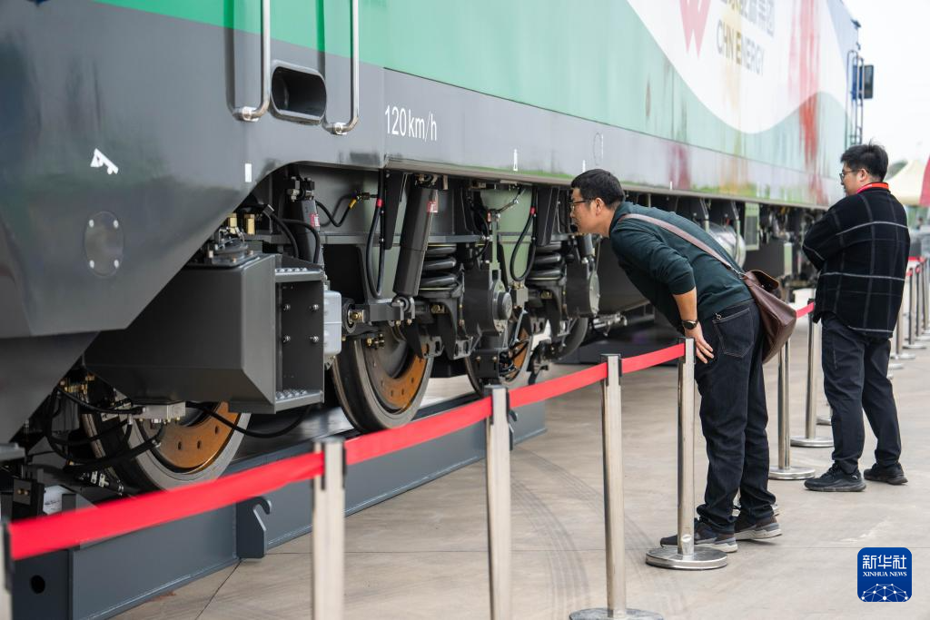 11月7日,观众在株洲国际会展中心了解列车底盘。新华社记者 陈思汗 摄pagebreak