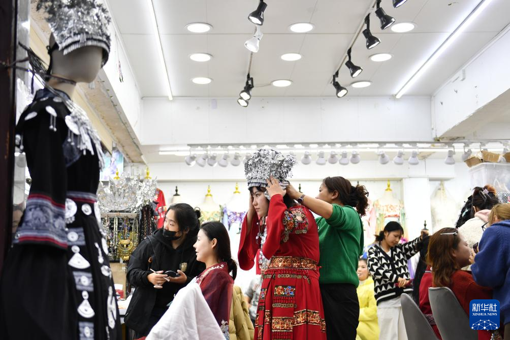 11月6日,游客在凤凰古城一家旅拍店内准备着装。新华社记者 陈振海 摄pagebreak