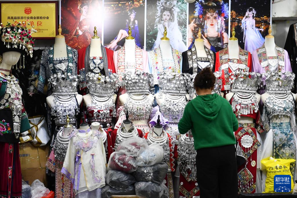11月6日,凤凰古城一家旅拍店店主在店内整理服装。新华社记者 陈振海 摄pagebreak