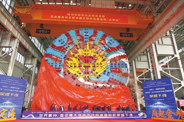 铁建重工、中铁十一局联合打造的超大直径盾构机“定海号”,2024年1月10日在长沙下线。